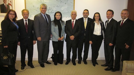 New York’ta bulunan KKTC Cumhurbaşkanı Derviş Eroğlu, Türk Amerikan Dernekleri Federasyonu’nun yeni başkanı Ali Çınar ve TADF heyetini kabul etti. Türkevi’nde gerçekleşen buluşmada Eroğlu, TADF’nin ABD’deki en büyük çatı kuruluşu olduğuna dikkat çekerek, Kıbrıs davasına verdikleri destekten dolayı teşekkür etti. Ali Çınar da, bugüne kadar yapılan çalışmalar hakkında bilgi vererek, bundan sonra da Kıbrıs davasının Amerikan kamuoyuna yansıtılması için gayret göstermeye devam edeceklerini kaydetti. Çınar, TADF’ın yeni yönetimi olarak ilk etkinliklerinin de’’Rauf Denktaş’ı anma töreni’’ olacağını söyledi. Buluşmada TADF yönetim kurulu üyesi İbrahim Kurtuluş’un kaleme aldığı taziye mektubu da Cumhurbaşkanı Eroğlu’na sunuldu.