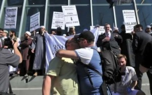 Avustralya’nın Melbourne şehrinde gerçekleşen Küresel Ateist Kongresini (Global Atheist Convention) protesto etmek için toplantı merkezinin önünde bir grup Müslüman toplandı.