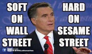 ‘’Mitt Romney, Minik Kuş’u çok sevdiğini ancak buna rağmen Susam Sokağı’nı yayınlayan PBS kanalına devlet desteğini keseceğini söyledi. Ve, Edi ile Büdü etrafında dönen işe kesinlikle karşı olduğunu da ekledi’’ Conan O’Brien