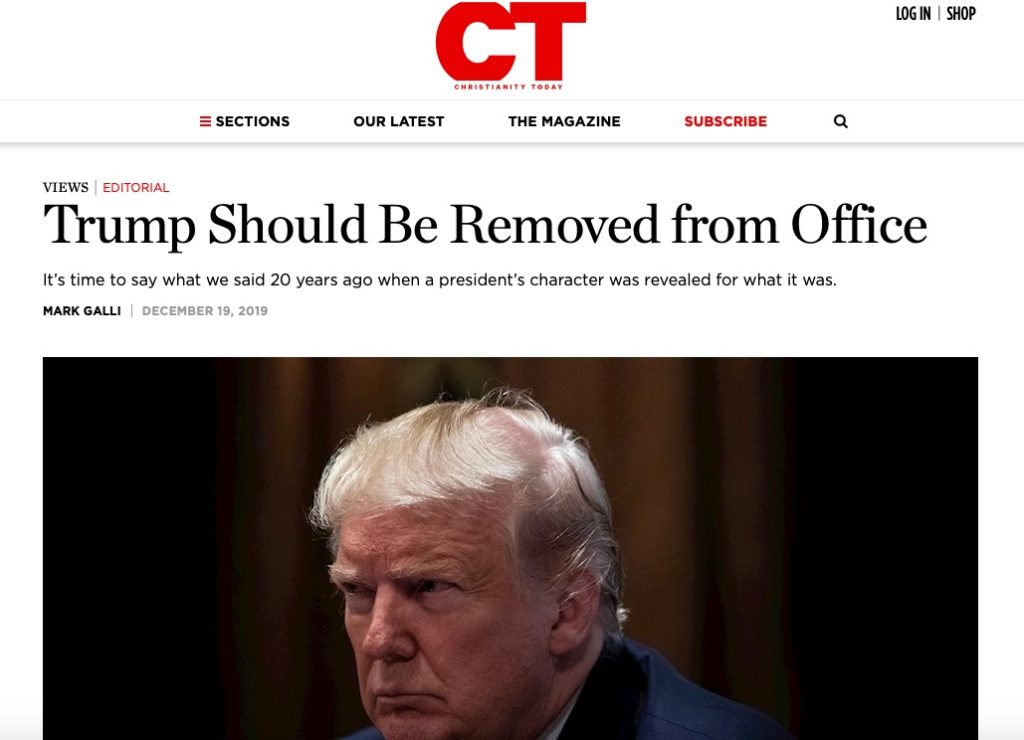 Temsilciler Meclisinin tarihinde üçüncü kez bir başkanın yargılanarak görevden azledilmesini istemisinin şokunu yaşayan Amerikan politik çevreleri, Perşembe günü ‘kırılma yaratacak’ yeni bir açıklamanın sürprizi ile karşılaştı. Büyük çoğunluğu Trump destekçisi olan Amerikan Evanjelik toplumunun en etkili yayınlarından biri olan Christianity Today dergisi, başyazısında sadece Temsilciler Meclisinin kararına destek vermekle kalmadı, Senato’dan da Trump’ın azledilmesini istedi.