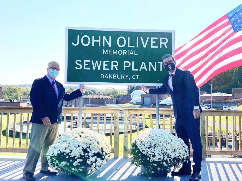Zoom’dan canlı yayınlanan toplantıyı izlediğini itiraf eden Oliver, bundan duyduğu memnuniyeti, kanalizasyon tesisine adının yazıldığı tabelanın açılışı törenine katılmak için Kovid-19 pandemisinin başlamasından beri ilk kez New York’taki evinden dışarı çıkarak Danbury’e kadar giderek gösterdi. Kovid 19 tedbirleri kapsamında, kalabalığın toplanmaması için gizli tutulan ve gerçekleştikten sonra kamuoyu ile paylaşılan törende John Oliver, bu tesisi neden çok sevdiğini, ‘’Bu kanalizasyon atık arıtma tesisi, ülkenin şu anda ihtiyaç duyduğu hemen her şeyi simgeliyor’’ diyerek açıkladı ve devam etti: