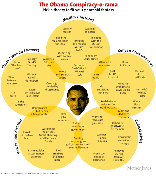 Mother Jonse, dergisi Obama hakkındaki komplo teorileriyle aşağıdaki infografiği hazırladı: